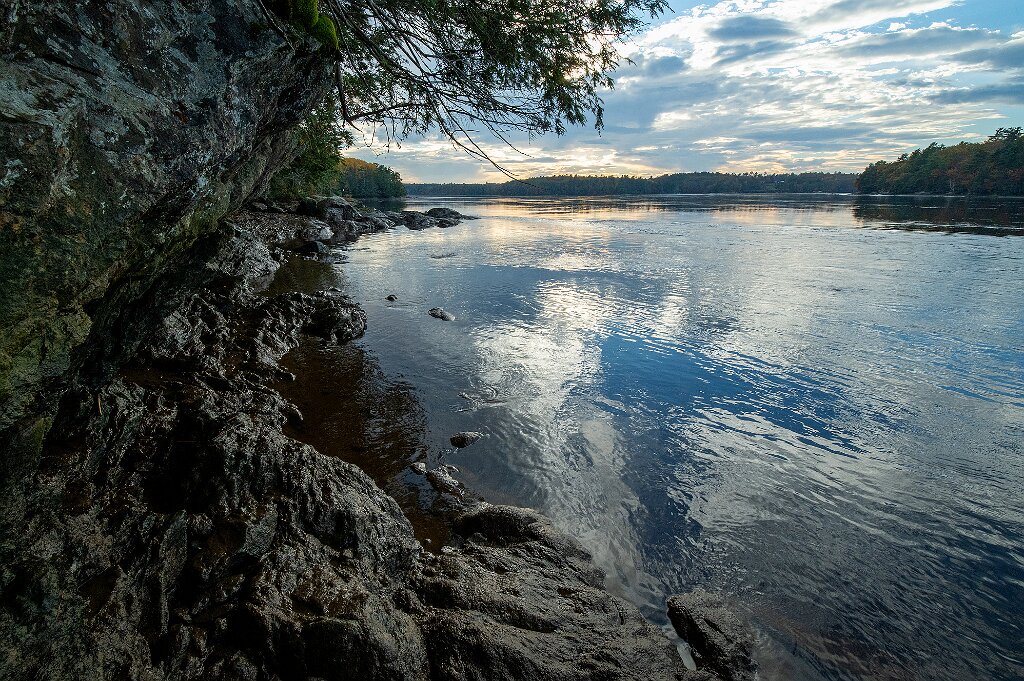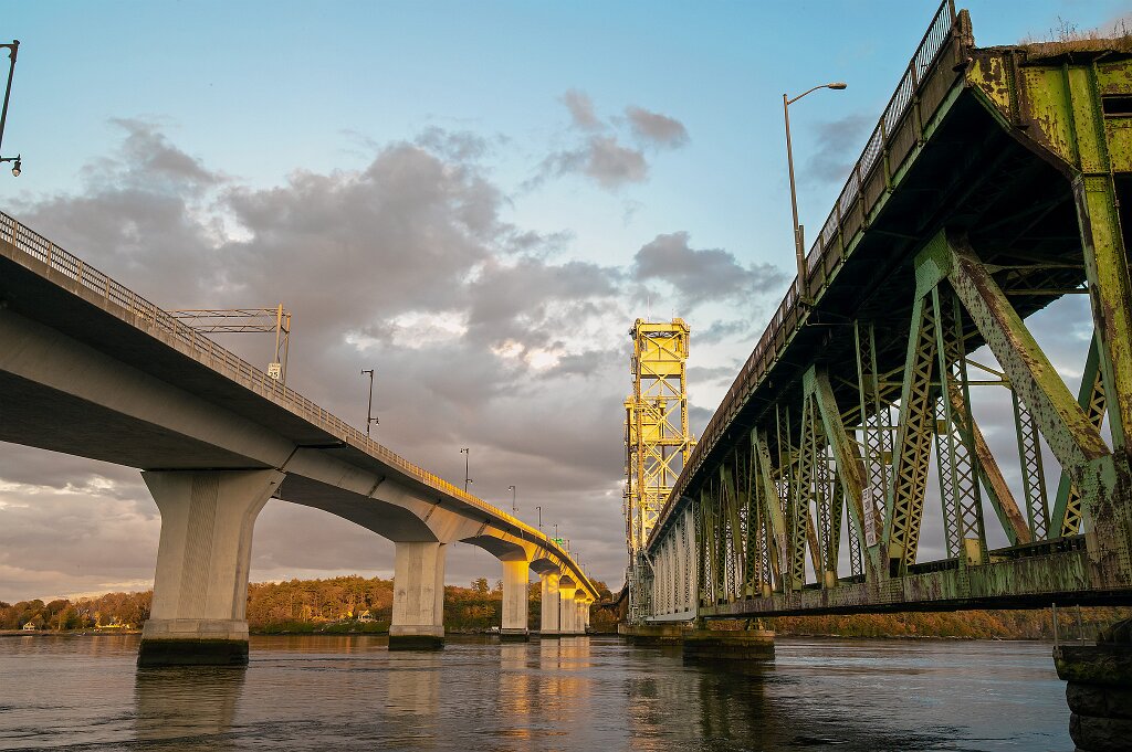 Looking south along the Kennebec River from just below the Maine Maritime Museum.