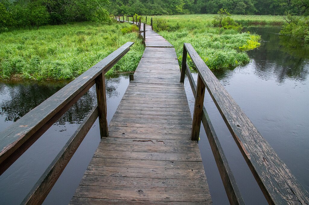 This view is looking east towards Hanson as the boardwalk crosses Poor Meadow brook.
