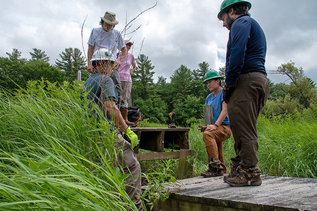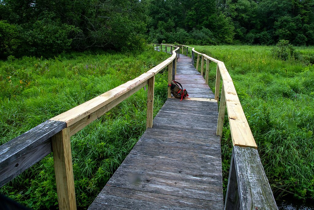 The 300 ft boardwalk was in need of repairs and in 2021 the Appalachian Mountain Club along, with volunteers, started the process of improving the boardwalk.